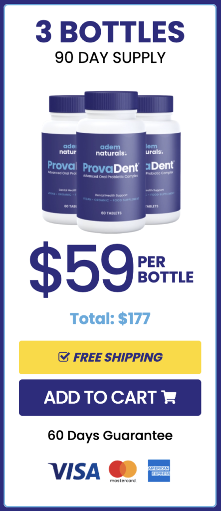 Provadent is formulated with natural ingredients and clinically studied probiotics, making it safe for most people. Its composition is free from harsh chemicals, gluten, and GMOs, significantly reducing the risk of side effects. Additionally, as a probiotic-based supplement, it is well tolerated by the body and can provide benefits not only for oral health but also for digestive balance.