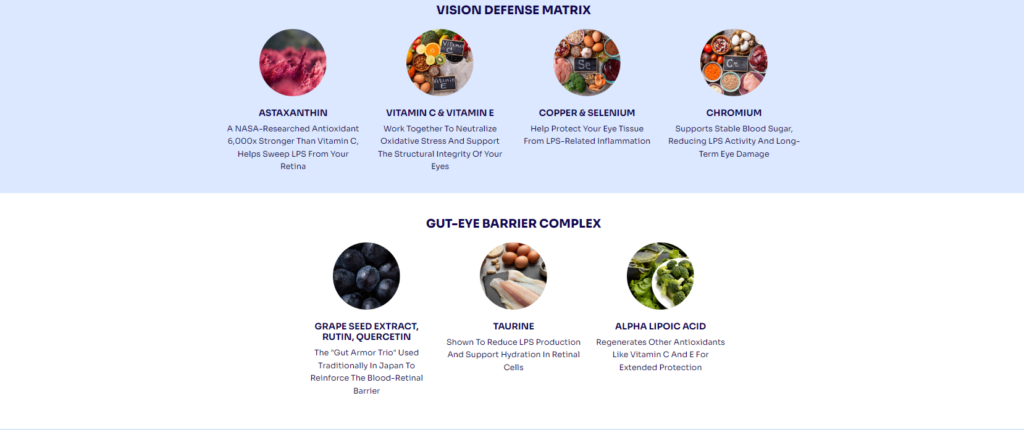 When I looked deeper into the formula, what stood out was the thoughtful combination of antioxidants, plant extracts, and nutrients commonly associated with eye health support. Ingredients such as astaxanthin, lutein, bilberry extract, and vitamin A are often mentioned in nutritional research related to visual wellness.